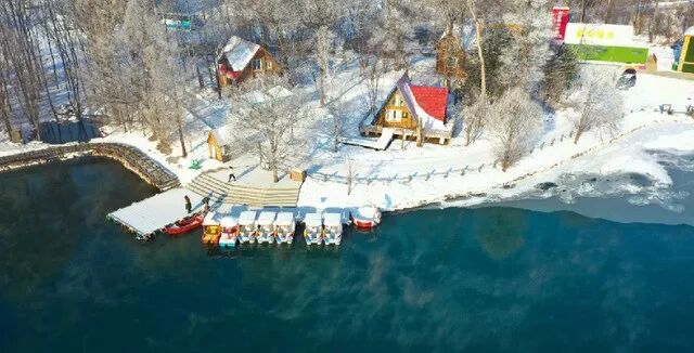 在这里乘船漂在河上仿若人间仙境,如果天气晴朗有日出的话,水边的枯树,岸边的雾凇和喷薄而出的红日和蒸腾飘渺的雾气交融在一起,便形成了一幅幅神奇魔幻,绮丽绝美的画面立于岸边,置身其中,仿佛自己远离了尘世,远离了喧嚣,走进了一个远古的神奇的魔幻世界,真的是船在水上漂,人在画中游。