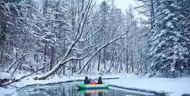 当你坐上皮筏艇开始漂流,奇妙的感觉油然而生,周遭静得出奇,只能听到潺潺的流水之音,在流动中驶向梦中的冰雪童话世界……