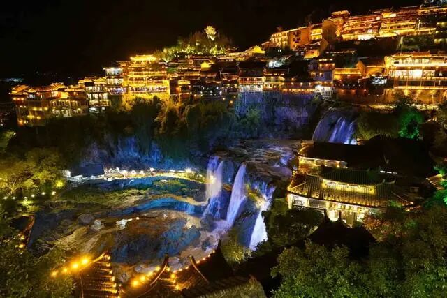 星空之下,悬崖之上,瀑布从山间倾泻而下。绝美的山水舞台中,融合自然景观与历史文化的实景演出《花开芙蓉》浓情上演,游人“夜游+旅拍”的新模式正成为点亮小镇夜经济的新名片。