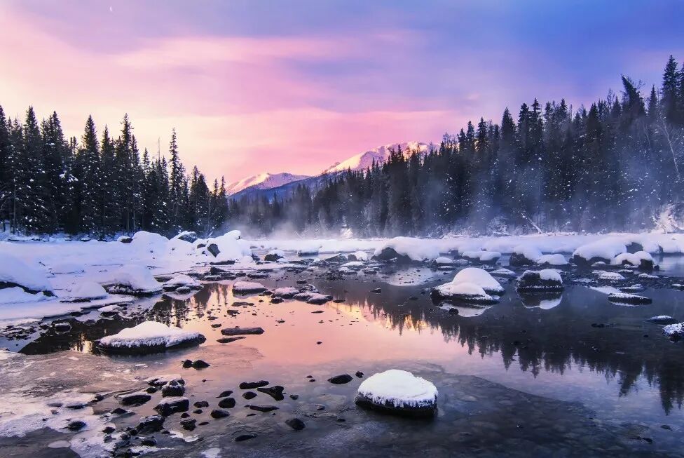 今天不能睡懒觉了,去昨天的观景台欣赏【禾木晨雾】。清晨,一缕阳光洒在远处的山顶上,山头被染成粉红色的,慢慢地,阳光穿过村子上空的淡淡水雾,慵懒地斜照下来,似乎很不情愿打扰这个还在睡梦中的美丽村庄。在太阳升起之时,拿着自己的水杯,跟山庄老板要上一壶开水,准备拍摄属于自己的网红玩法【泼水成冰】。