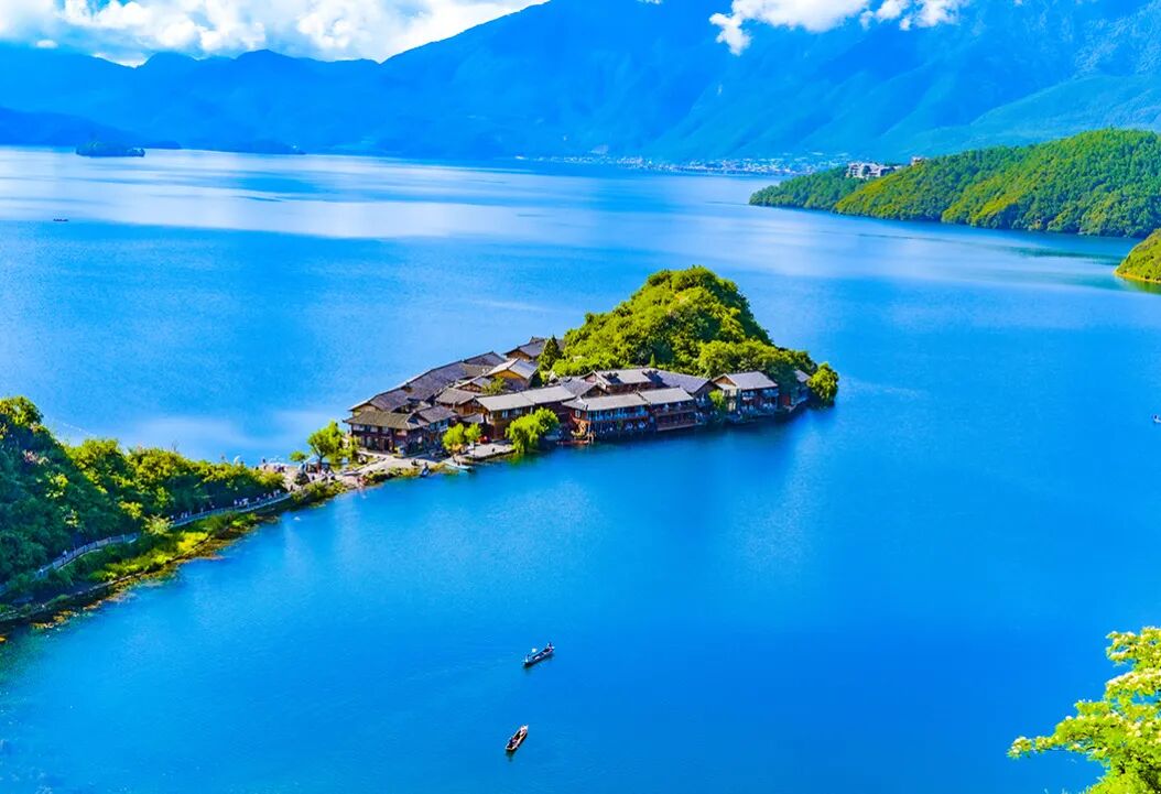 17:00 前往【里格半岛】观景台,在这里可以俯瞰整个里格全景。里格岛位于泸沽湖西北部,是湖边的一个美丽半岛,三面环水,背靠格姆女神山,风景非常优美。