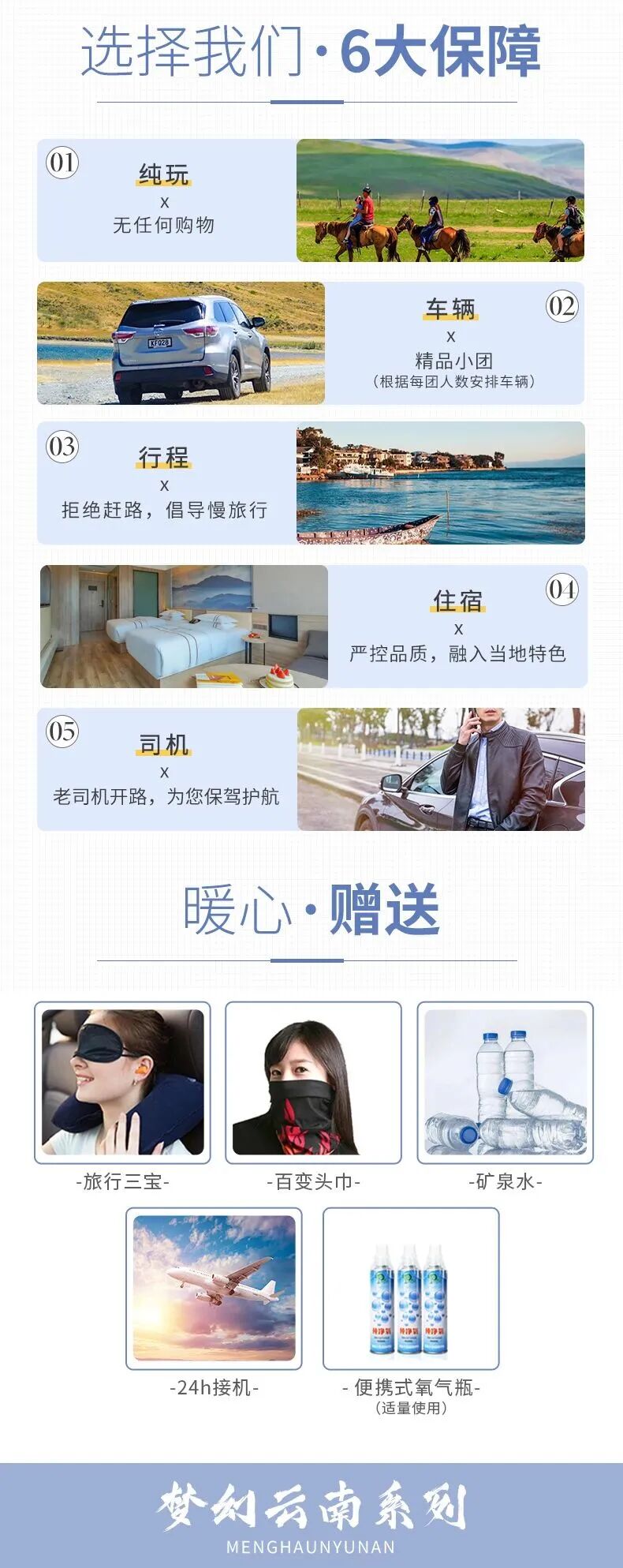 6.保险:每人赠送50万元保额旅行社责任险、34万元旅游意外