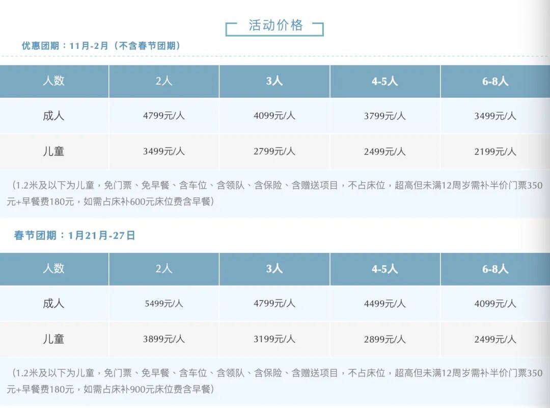 第01-11期为优惠团期,成人3199元/人,儿童1899元/人