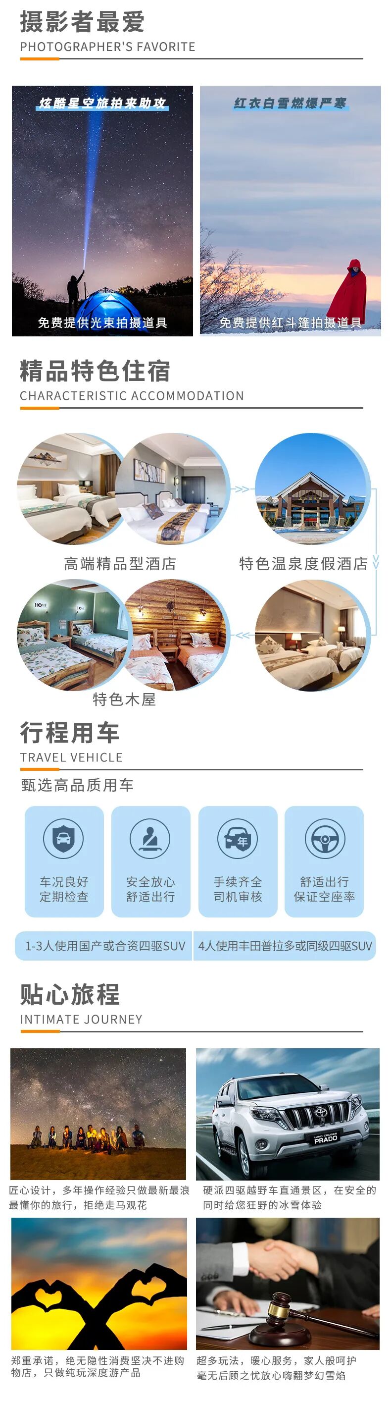 3、特色---提供1对1管家式服务,全程一辆车,培训上岗司机兼领队,景点路线可以根据旅行者需求制定组合设计。