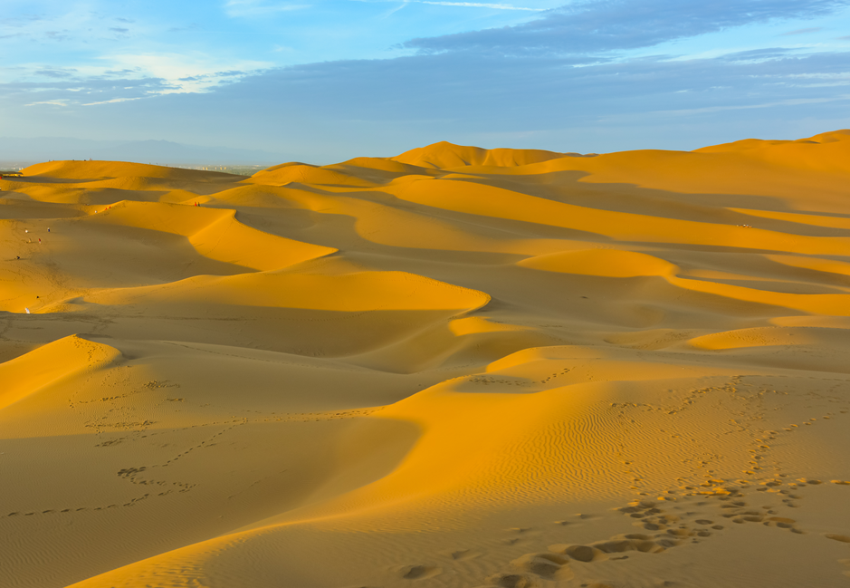 傍晚日照没那么强的时候前往【库木塔格沙漠】。库木塔格沙漠风景名胜区是世界上少有的与城市零距离接触的沙漠,是塔克拉玛干沙漠的一部分。