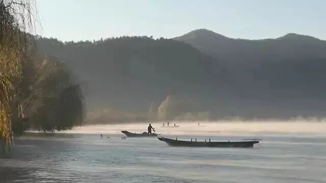 大雪节气过去,天气开始转凉,清晨映着晨阳,湖面上的水气凝结成水雾,渔民的渔船在虚无缥缈云海之间飘荡,湖面云雾迷蒙,轻拢慢涌、飘荡不定,似轻盈柔美女子的缭绕奇幻舞姿……这种美景是摄影爱好者梦寐以求的景致。