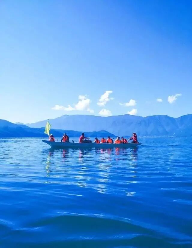 天空掩映下湖水是那样湛蓝,那样晶莹透澈。