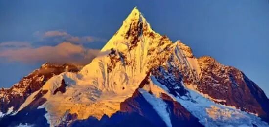 梅里雪山又称太子雪山,是藏族聚居区八大神山之一,其海拔6740米的主峰至今仍是未被征服的“处女峰”,也是唯一因文化保护而禁止攀登的高峰,其著名的“日照金山”是很多人梦寐以求、难得一见的胜景。