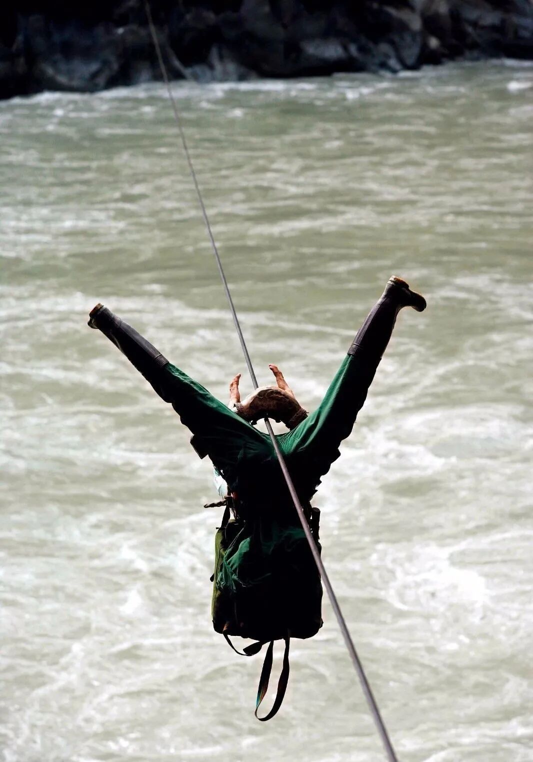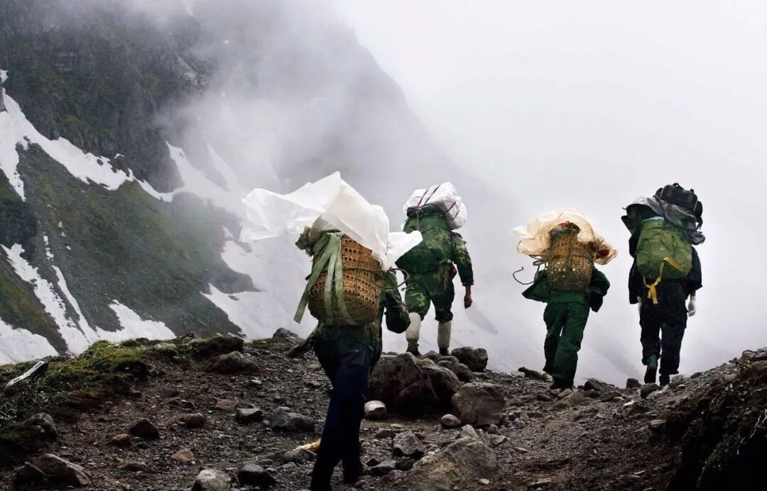 钢筋水泥等建筑材料也靠他们背,背过吊桥藤桥,背上溜索,背着爬过海拔4000多米的多雄拉,雪崩来了跑不赢,持咒念经,听天由命。