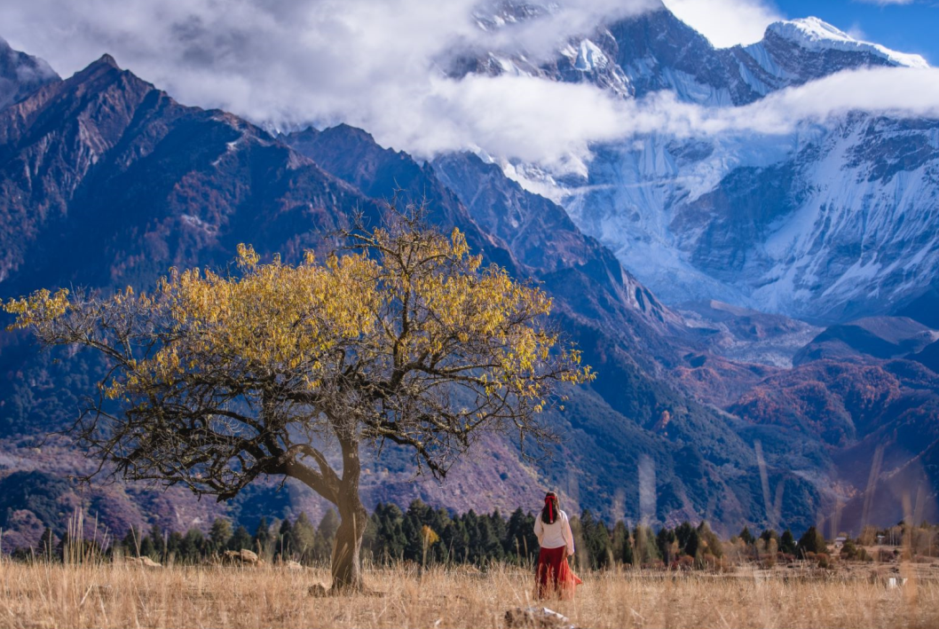 沿着峡谷深处,视线聚焦在索松村,除了桃林遍布,这里也可以观看最美山峰——南迦巴瓦的峰。