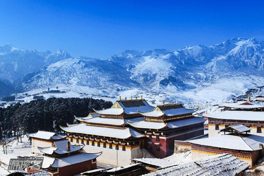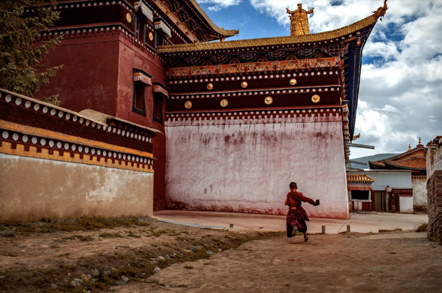 冬季的甘南,褪去尘世的烟火,湛蓝的泠冽天空、圣洁的朵朵白云、纯洁的皑皑白雪、深红的庄严僧衣是甘南冬季最主流的色系。