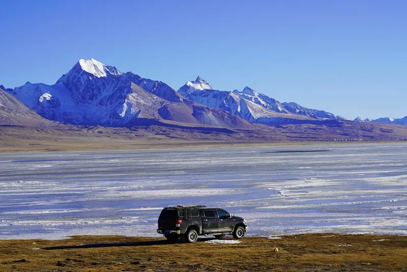 普莫雍措可喻为破碎晶莹的天空之镜,湖面的冰虽然结得厚厚的,但却能看得透透的,湖底下的世界一览无余,蓝冰中的裂痕、气泡也都可以看得清清楚楚,行走其上,有种一眼万年的广阔感!
