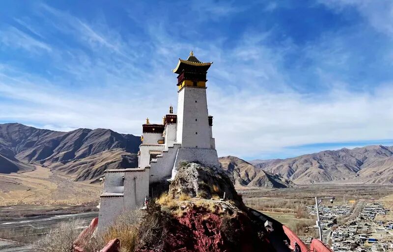 雍布拉康,是西藏历史上第一座宫殿,也是西藏最早的建筑之一,位于山南地区泽当镇东南,高耸于雅砻河东岸扎西次日山顶。其中,“雍布”意为“母鹿”,因扎西次山形似母鹿而得名;“拉康”则意为“神殿”。