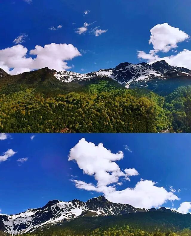 想看日照金山,直接来吧,这种事就是看运气的,天气预报不算太准,报道我那天早上是多云,但是雪山方向没有一丝云,云全在太阳升起的方向,所以那天的日照金山是金黄色的,不是橙黄色,因为太阳被稍稍遮住一些。