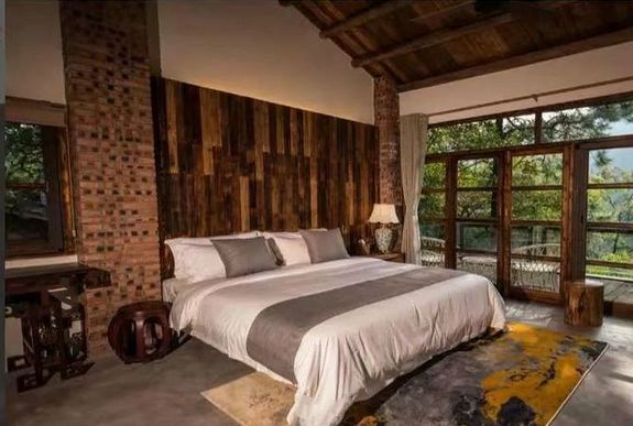 整个民宿由3间独立玻璃屋+一栋野奢6房别墅组成。