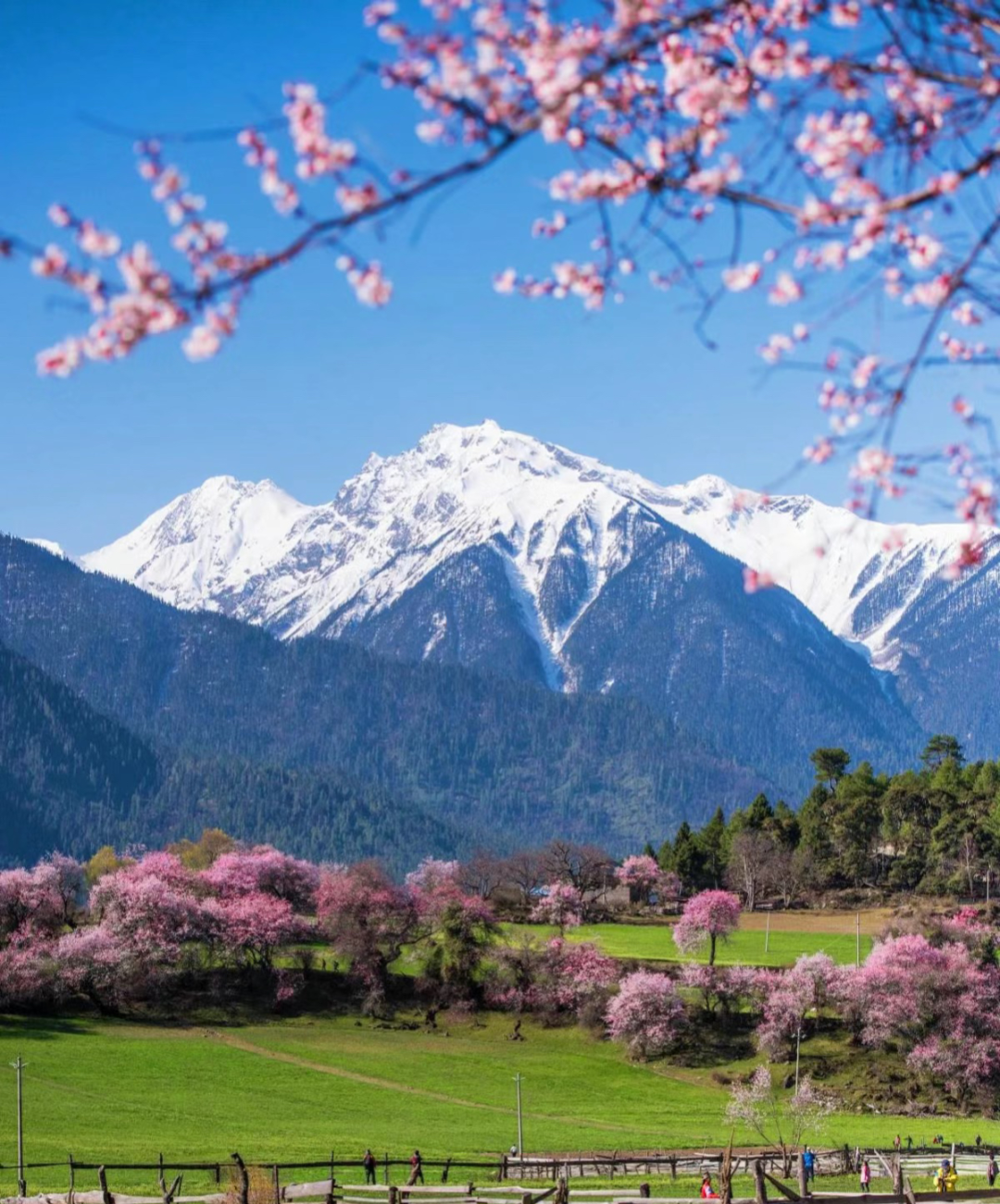 林芝是西藏进入春天最早的地方,被大家称为“西藏小江南”,可是江南没有磅礴的雪山,而林芝春天的标配就是雪山下盛放的桃花。