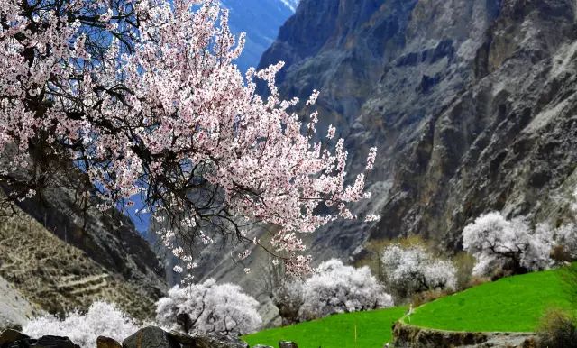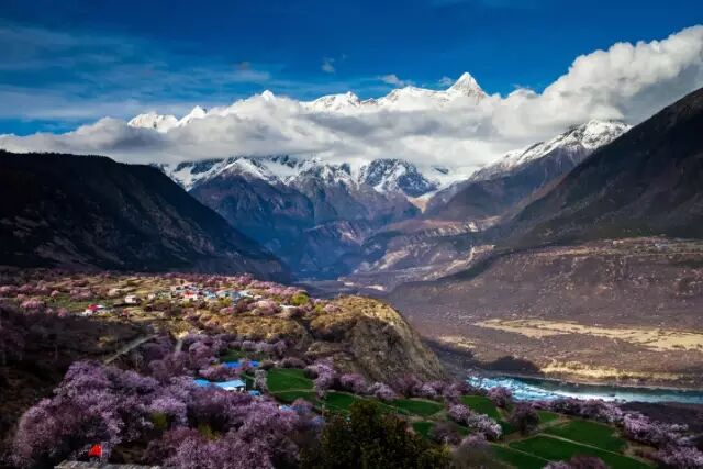 雅鲁藏布江大峡谷是世界上最长和最深的峡谷,正是这道高原裂痕使得藏南谷地地区成为著名的青稞产地。上有蓝天雪山,下有流水田野,再加上粉色的桃花。峡谷的春天让人无法错过。