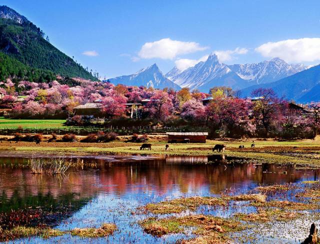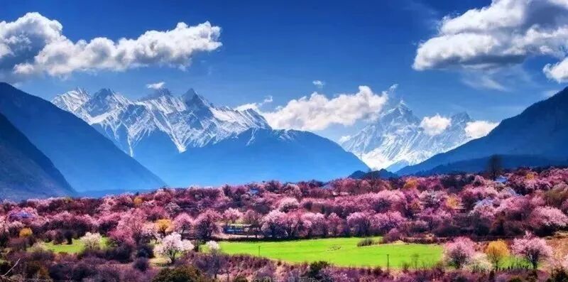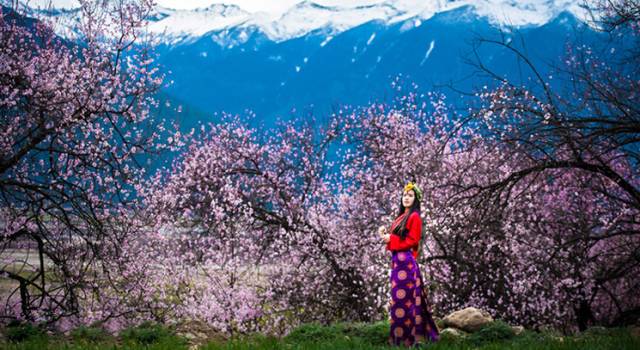 每年3月中旬至4月初林芝旅游将迎来第一个小高峰,这里漫山遍野的桃花开始铺满山坡,绵延至河谷。大株的桃花树如同桃花仙子,簇立在尼洋河畔,雪山之下,与云朵相拥,形成密集的桃林。漫步其中,可见雪峰耸立,桃花怒放,清泉嬉戏,藏寨悠然,美到令人窒息。