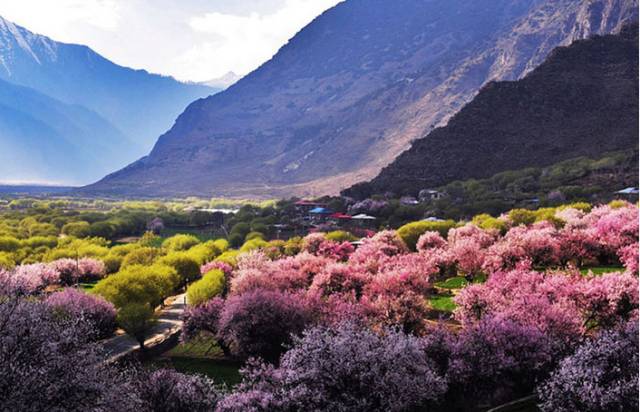 古朴苍虬的百年、千年野生桃树上盛开着密密匝匝、层层叠叠的嫩蕊繁花,与蓝天、雪山和翠绿相互映衬,就算是拍摄过再多桃花的摄影师,来到这里,也一定会感受到林芝桃花带来的充满着野性和激情的视觉冲击。今天为大家盘点一下林芝几个桃花村。