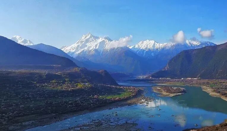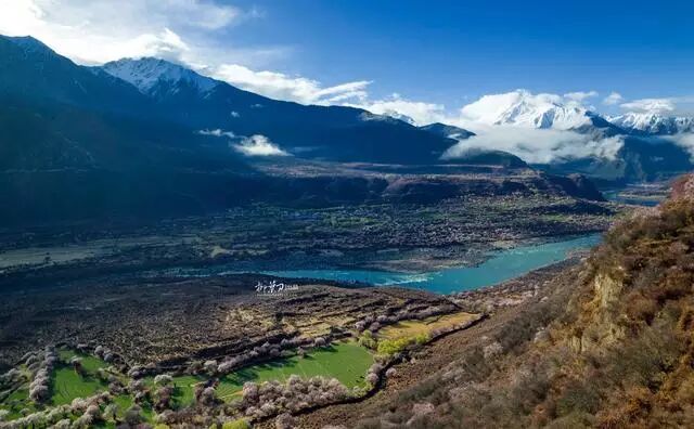 峡谷中有着不少雅鲁藏布江的支流,这些支流大多短小,从雪山上倾泻而下,滋养着峡谷中的青稞田、小麦地。每到春来,桃花绽放在碧绿的田野之上,间杂着藏家人的房屋民居,好似一幅水墨画一般。