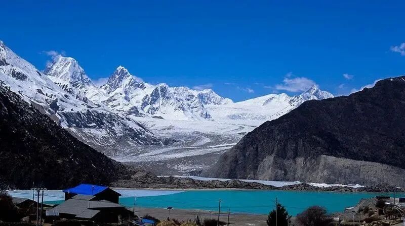 来古村在巴松措的源头,被《中国国家地理》杂志评选为“中国最富有美景的村庄”,而且是风靡旅行圈的纪录片《第三极》拍摄地。春天里,加之桃花的衬托,雪山桃花相映红。还可以经过米堆冰川参观。