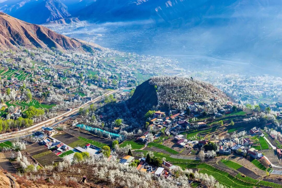 而在川藏南北线上,就盛开着两种不同的花海,妖娆美艳的林芝桃花,和朴素纯粹的金川梨花。