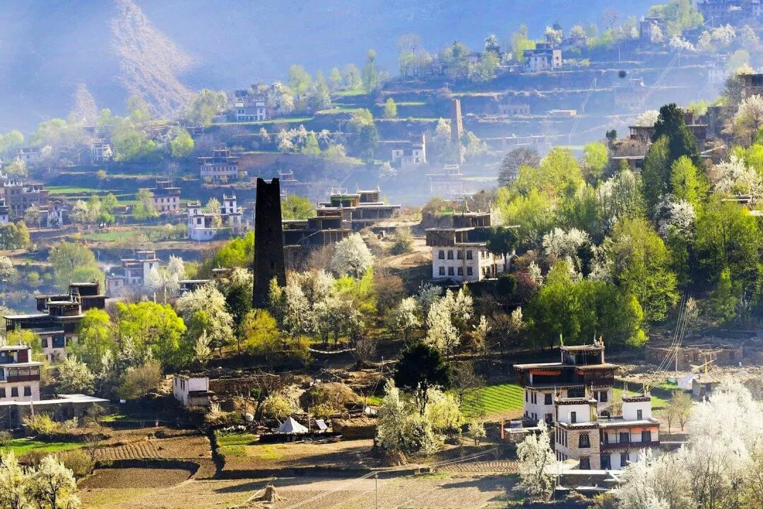 尤其是每当清晨,梯田上散落的藏式民居上空升起的袅袅炊烟搭配着若隐若现的百亩梨花,因为这幅景象,也让金川被《中国国家里地理》杂志评选为“最美村寨”。