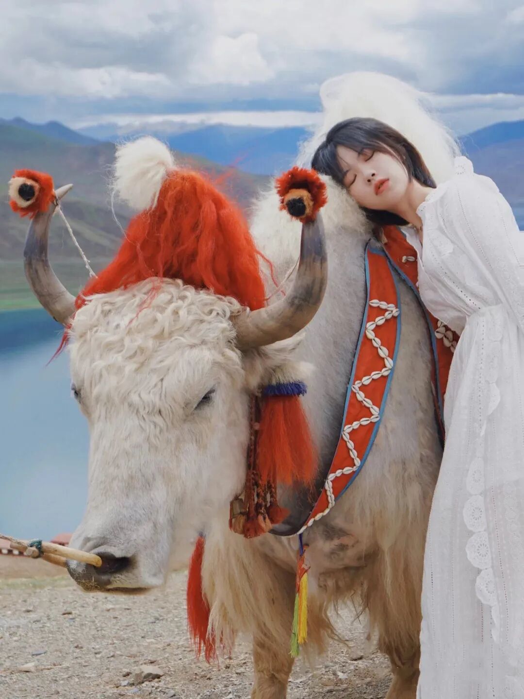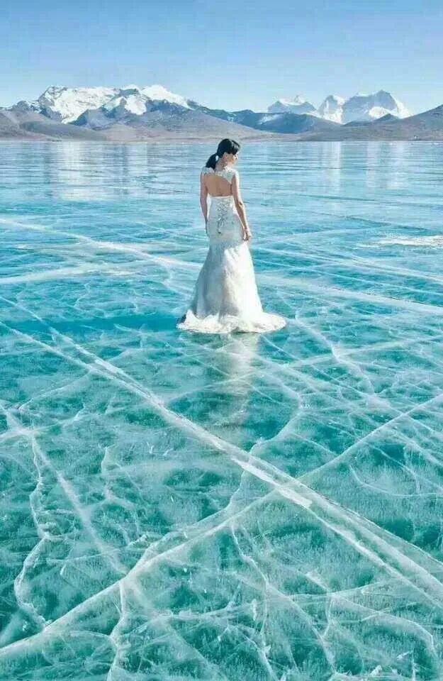 在西藏的圣湖面前,可以选择仙仙的白色,