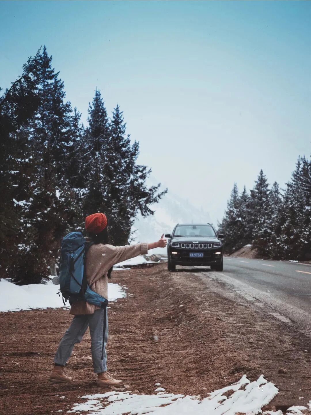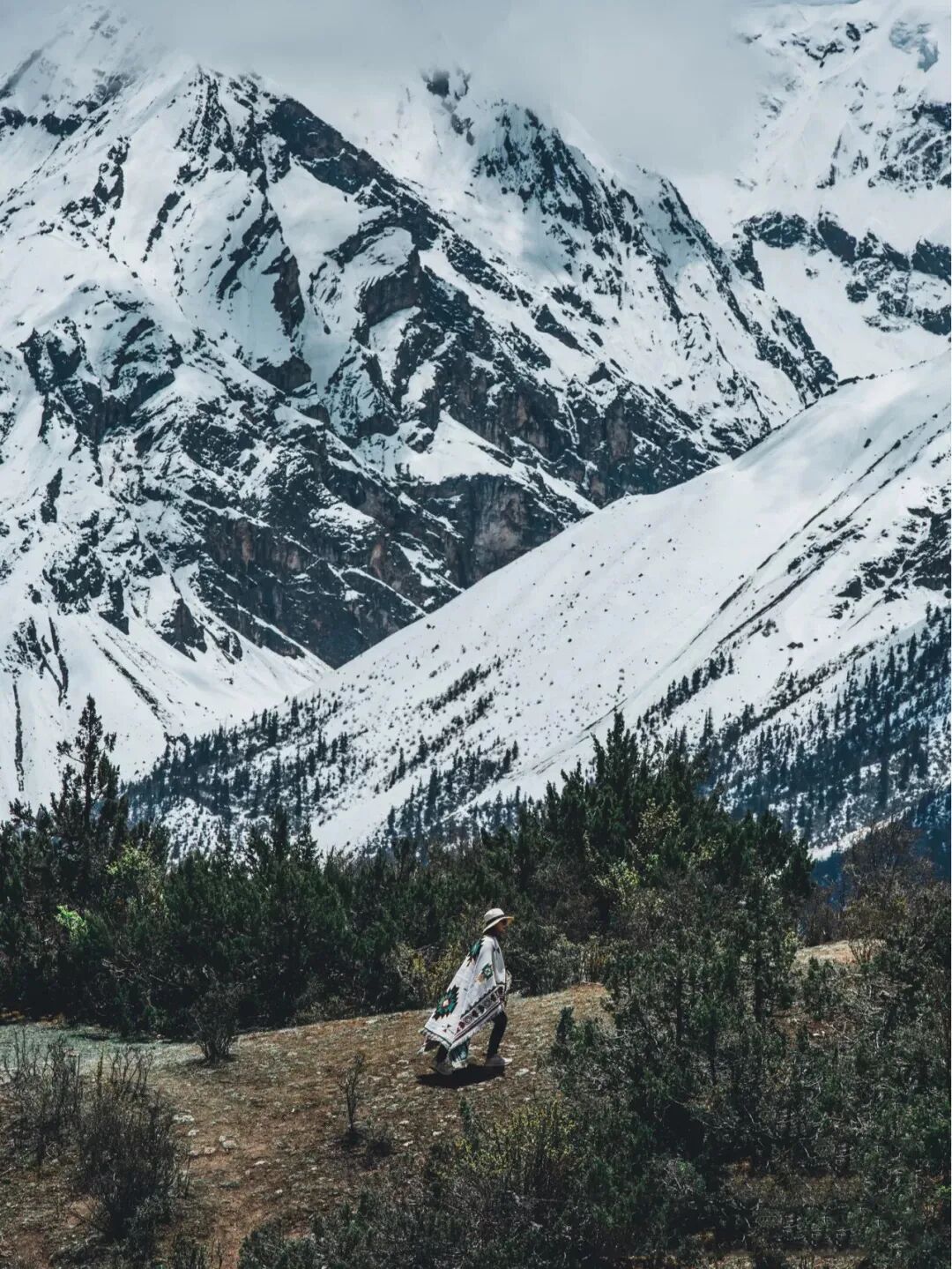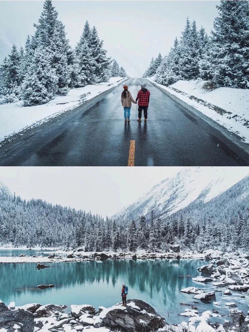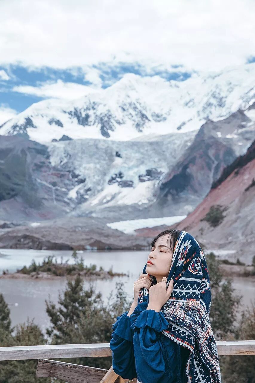 或者拉远一点,拍出雪山的轮框,人安安静静站在雪山边就很好看,但还是那句话,尽量拒绝臃肿。