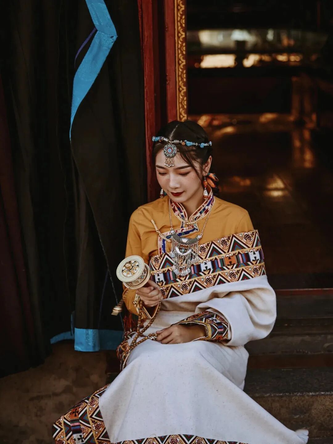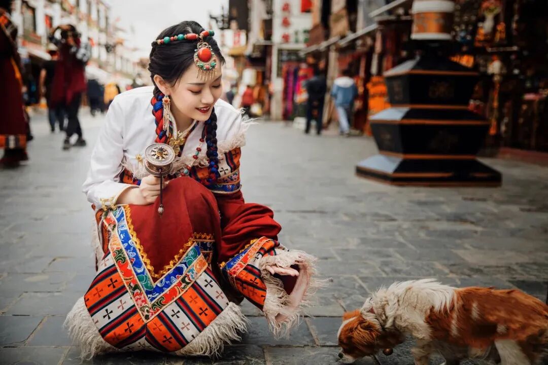 /穿上藏服,变成一个藏族姑娘/