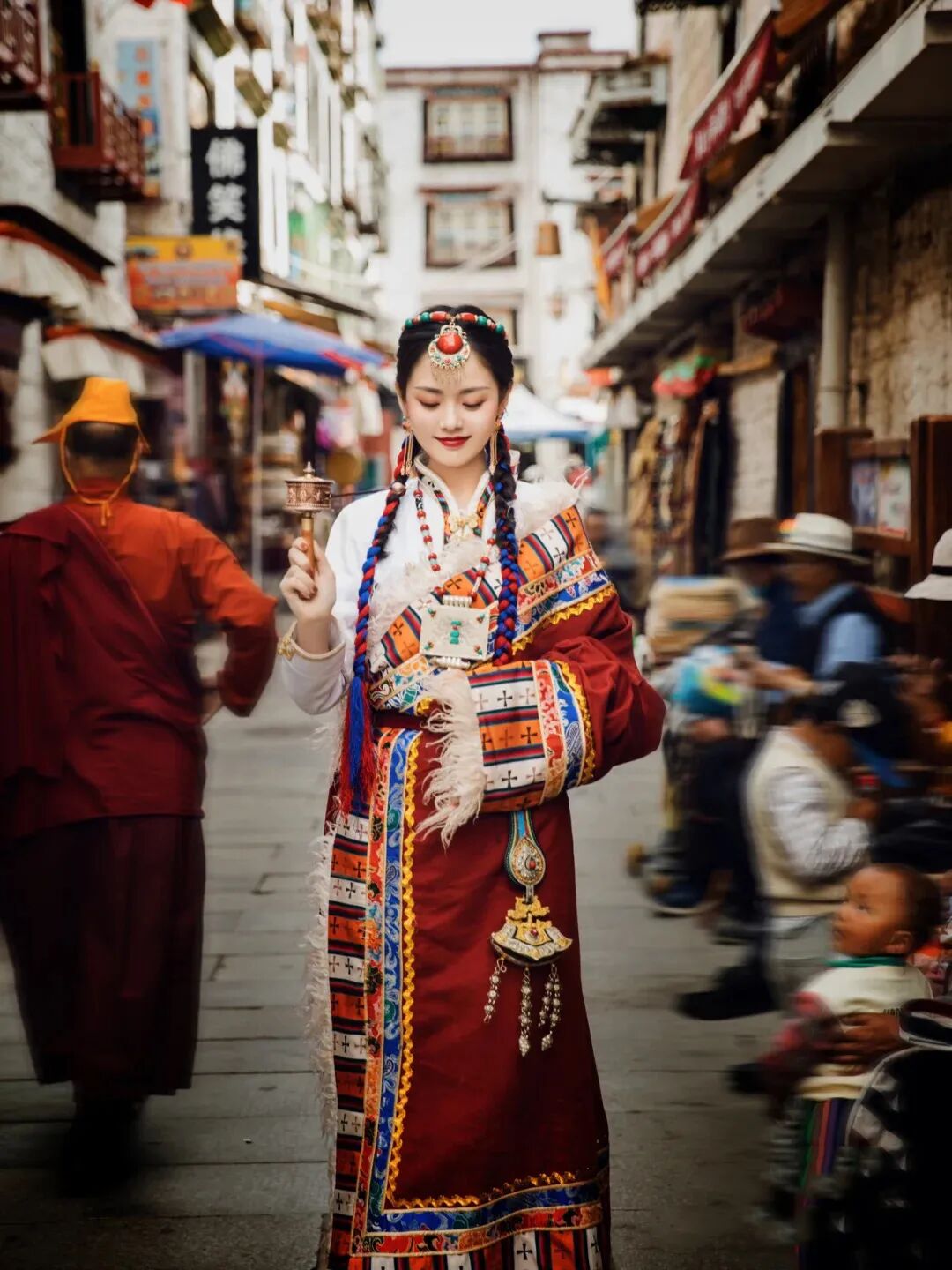 穿上浓重色彩的藏服,行走在街头,随手一拍都是一张一生难忘的有质感的照片。