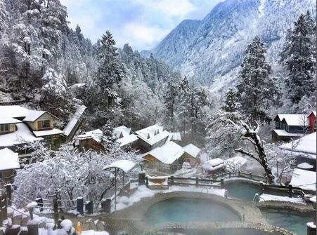 贡嘎山下的冰川奇观,在大雪纷飞的时节,海螺沟温泉称得上是一绝。