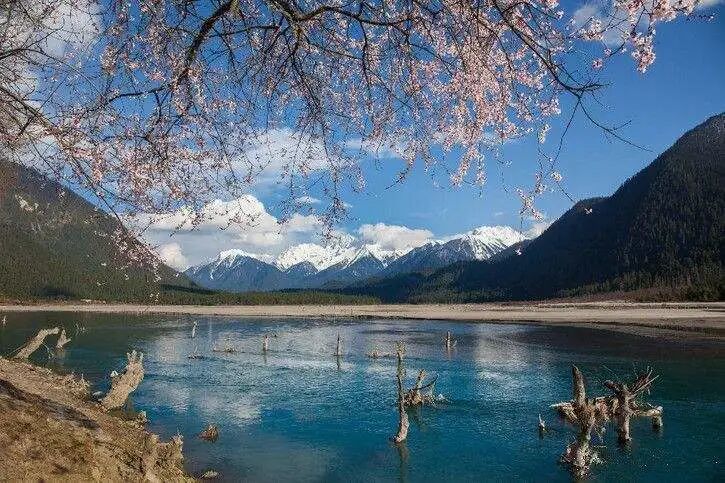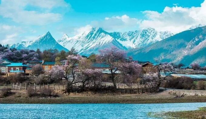 西藏江南,那是一片真正的田园风光,蓝天白云下绿草成茵,雪山环抱中桃花怒放。