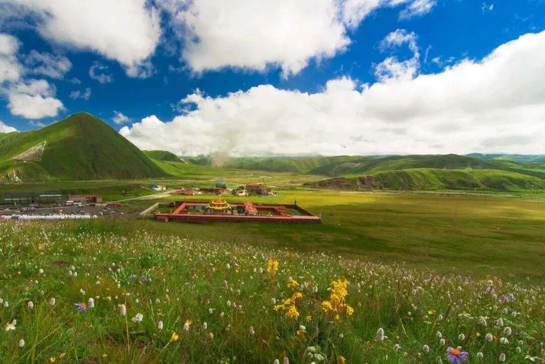 是菩萨喜欢的地方,当你的双脚踏进的时候,你一定会首先惊艳这里的白云和蓝天,再次,便是这里成群的牛羊和草原。