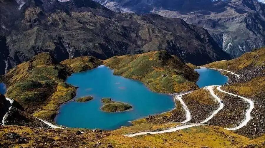 科幻世界中的外星球,一千多个大大小小的海子如上帝失手撒下的一颗颗钻石,闪烁在山间。