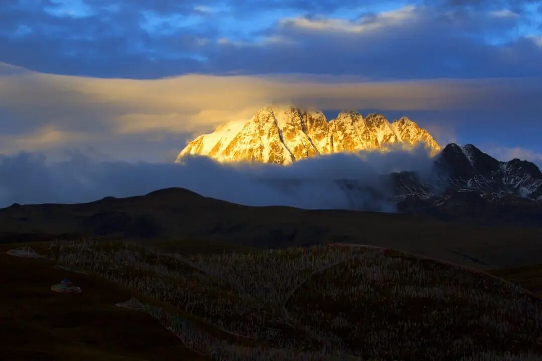 西藏众山之父,峰体终年积雪,云雾缭绕,日照金山更是一绝。