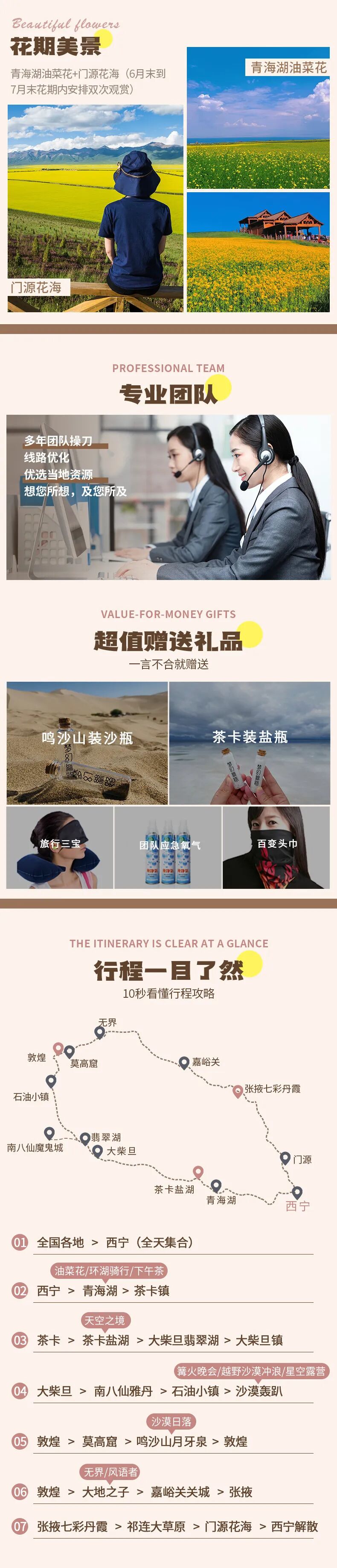 4、门源花海已赠送赏花费用,不含观景台门票60元、环保车15元;