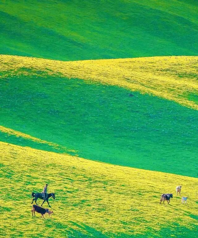 伊犁真的很美,我说的风景只占冰山一角。伊犁美得出奇,不平凡,就连滋养它的伊犁河也是向西流的。很少有如此明亮的蓝天和绿色的田野;山下难得的良田!在这里,雪山长河衬托着小桥流水;在这里牛羊蒙古包牧场和当代城镇叠加在一幅统一的画面中.....伊犁人的生活就像甜酒。伊犁人民热情、淳朴、善良,每个庭院都开满了鲜花,干净而优雅。所有的年轻人都会唱歌跳舞,所有人都知道尊老爱幼,热情好客随处可见。