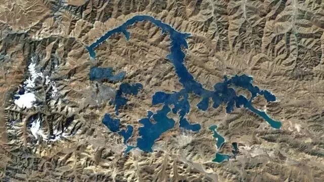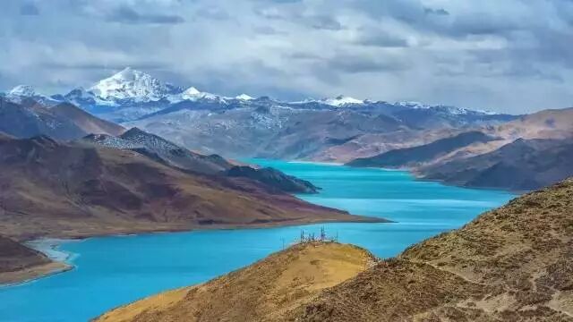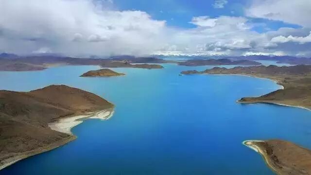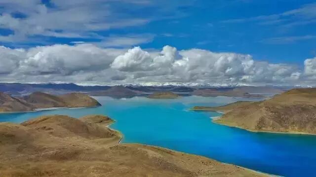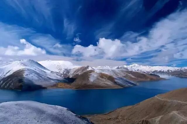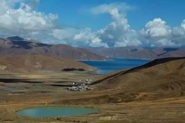 (加若拉山口拍摄的羊湖全景,下面是章达乡 图片来源于网络)