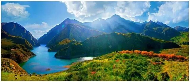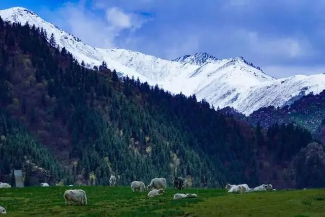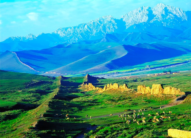 位于祁连山北麓腹地,这里是我国唯一的裕固族自治县,没有尘世的喧哗,只有自然的吟唱,这里与巴尔斯雪山相连,群山峻岭旁,碧草如茵、繁花似锦,蓝天白云下,草原壮阔、歌声悠扬,巴尔斯雪山主峰巴尔斯圣山海拔5118米,是裕固族人心中的神山圣地。