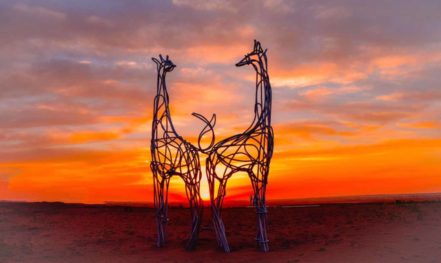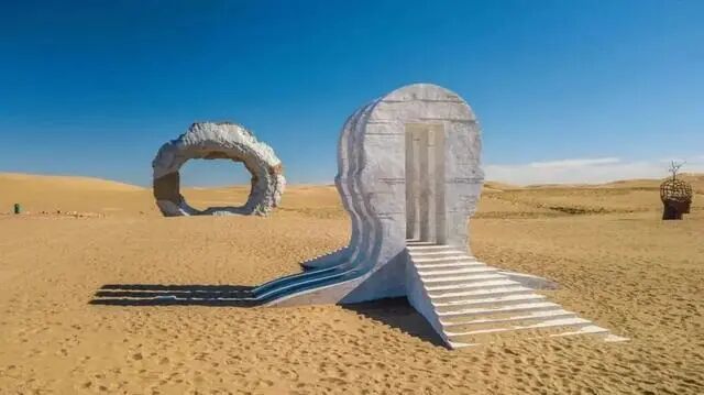 武威民勤如同一把楔子,镶嵌在巴丹吉林沙漠和腾格里沙漠中间,这里承载着永恒不朽的治沙精神,如今,这里绿洲绵亘,茫茫大漠也变成了艺术家们的创作画布。中国·民勤沙漠雕塑国际创作营于2018年在苏武沙漠大景区陆续举办后,来自国内外雕塑家的百余件作品永久矗立在了这片沙漠,当人们置身于这片茫茫大漠,便会不自觉被这各具形态的雕塑所折服。