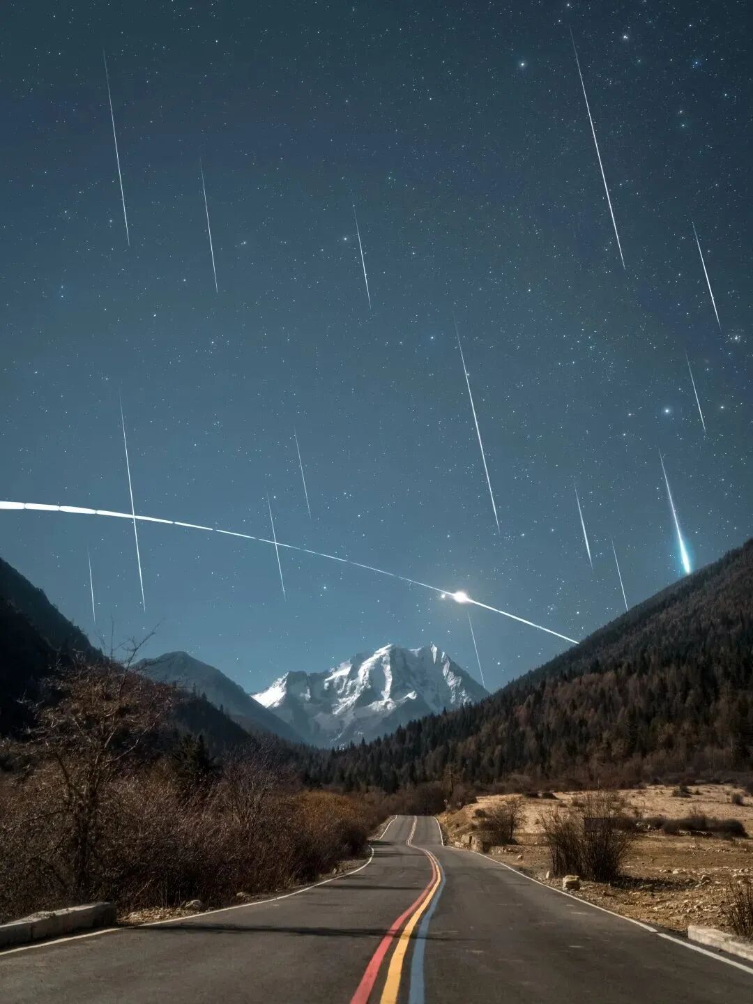 (精彩点评:星空下走在这条路上的人,一定见过流星划过,想象和现实只是分秒之间,没有人会拒绝一场流星雨的到来。)