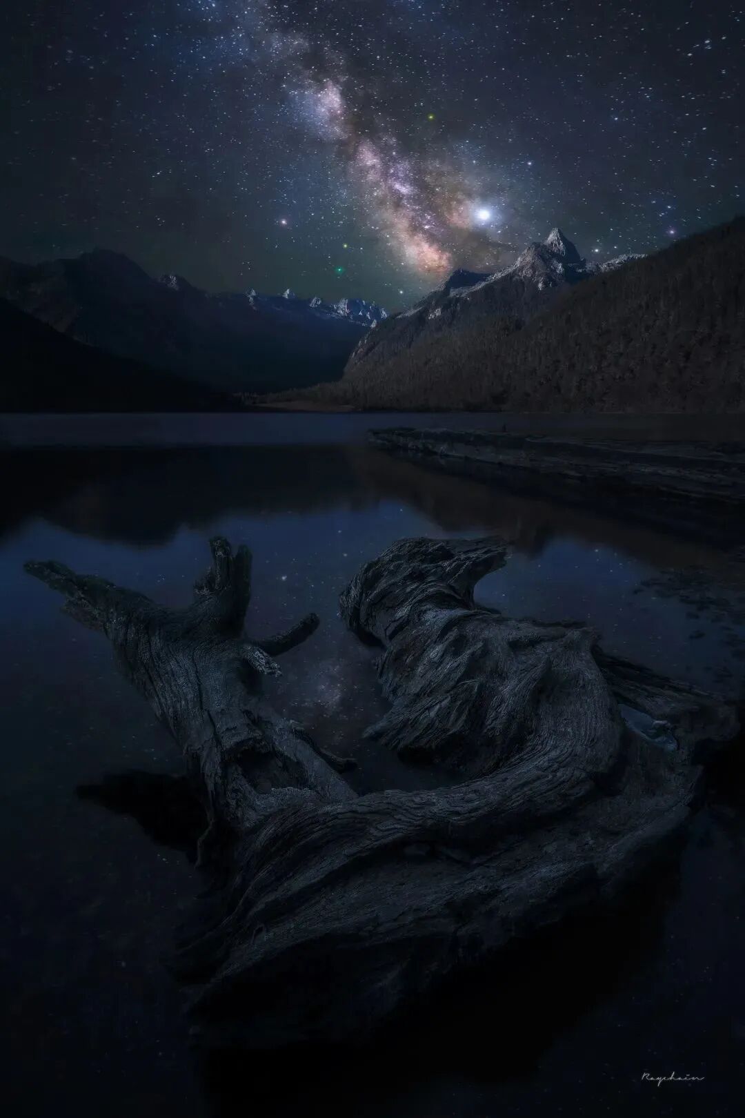 (精彩点评:枯树与苍穹之间,写满了时间与空间的字句,或许只有在午夜万籁俱静的甘孜,才能读懂这些,一幅好的作品,总能带给人联想。)