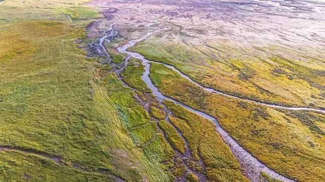 祁连山下的河流穿过山谷流向沙漠,在山前形成一个又一个壮观的冲积扇,错杂纵横的支流默默滋养着土地,让陇原萌生出更多的绿意。黄河流经玛曲,绕出180度的“九曲黄河第一弯”,海拔3400米的高原上,也有着奔腾壮阔的蜿蜒。