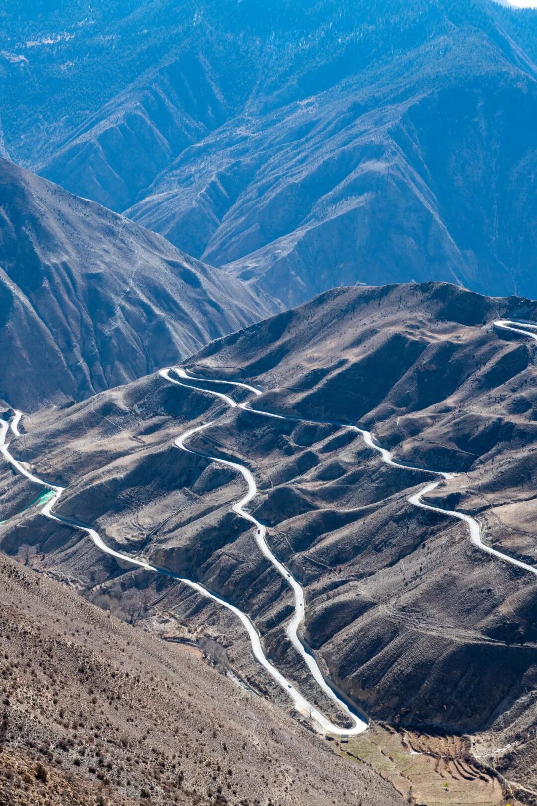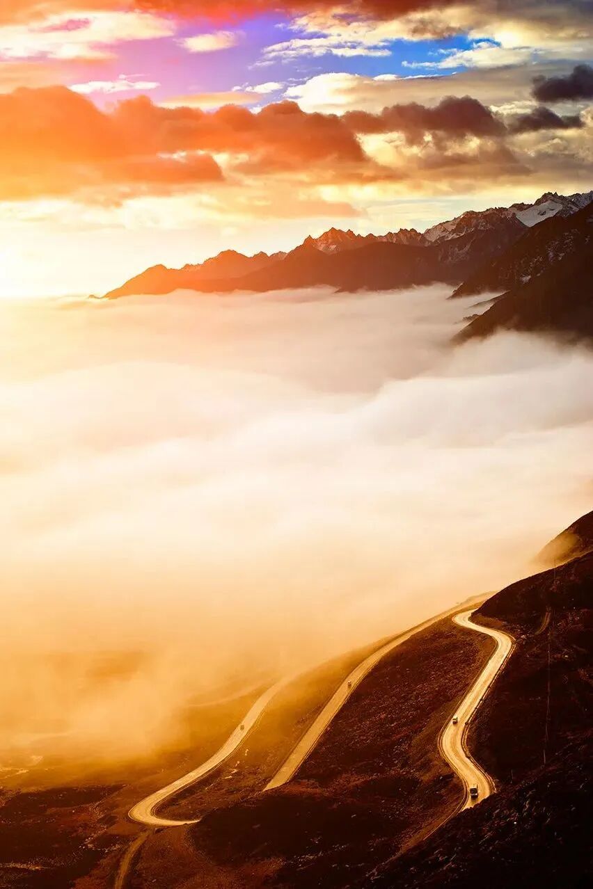 ▲折多山的盘山公路九曲十八弯,来回盘绕就像"多"字一样,拐了一个弯,又是一个弯,难怪当地人有句话叫:“吓死人的二郎山,翻死人的折多山”
