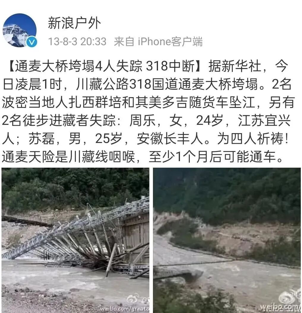 4人失踪,下落不明,318中断