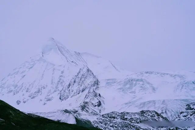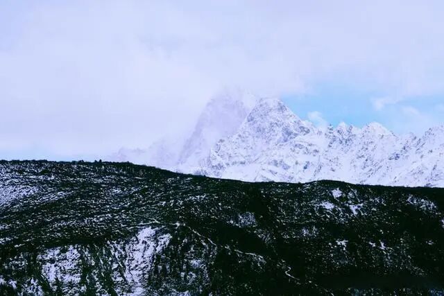 普玉一村走到尽头,左边是孔嘎雪山和孔嘎冰川,右边就是祥格拉冰川。祥格拉冰川是孔拉雪山孕育而成的。神奇的孔拉雪山群峰,像是一支“甜筒冰激淋”,洁白的冰川如同奶油一般悬挂在三角形的主峰之上。