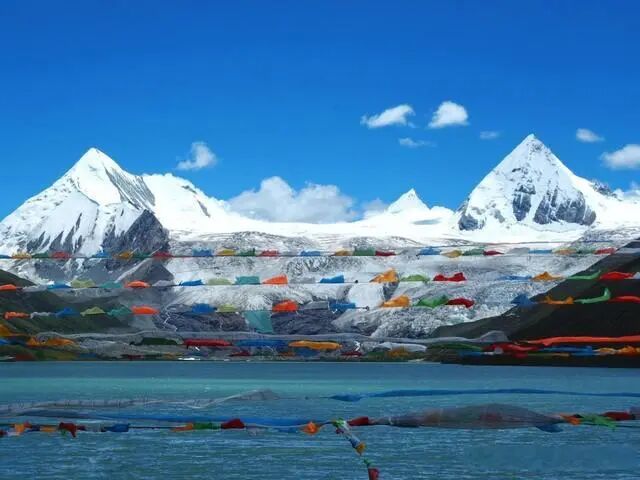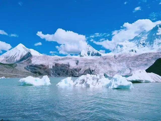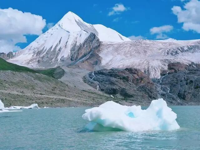 萨普神山,一经问世,就惊艳无数人的时光。不仅如此,因为萨普神山的现世,旅人们对雪山美学有了更高的追求。萨普神山山顶,常年白雪皑皑。冰湖中常有蓝冰搁浅漂浮。触手可及的正三角形金字塔冰山,乃世界上罕有的奇观。湖畔牛羊成群,还有可爱土拔鼠……外湖畔经幡飞扬,朝圣者来来往往。