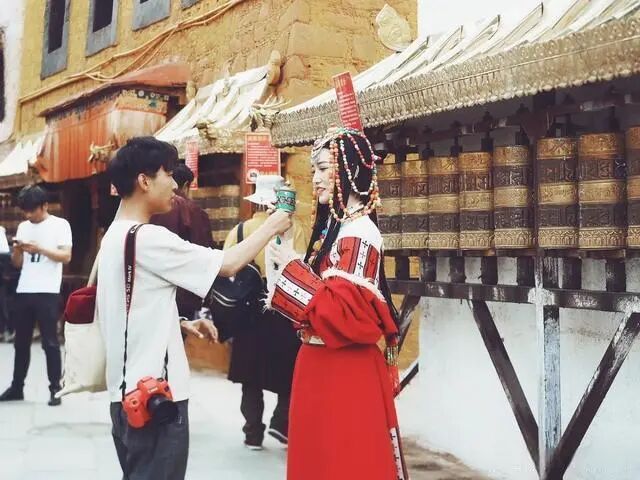 从 拉萨 贡嘎 机场,乘坐机场大巴,历经1个小时车程,终于抵达了 拉萨 市区。此次,多留了一天时间在 拉萨 ,主要是为了弥补遗憾。之前来 拉萨 ,都是匆匆忙忙,朝圣了布达拉宫,逛了八廓街,喝了甜茶,感受了 拉萨 式的慢生活,却唯独忘了拍一组藏族写真。这一次行走在 拉萨 的街头,当了一回藏族姑娘。