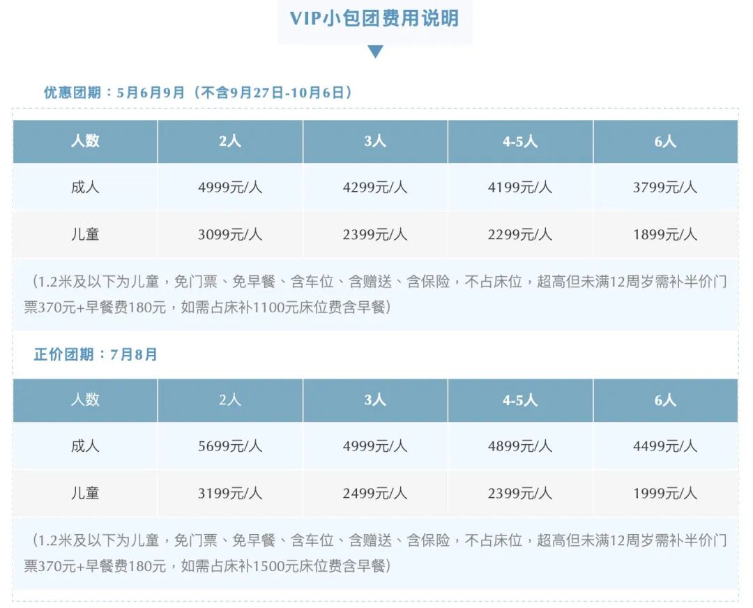 1.2米及以下为儿童,免门票、免早餐、含车位、含领队、含保险、含赠送项目,不占床位,超高但未满12周岁需补半价门票元+早餐费元,如需占床补元床位费含早餐